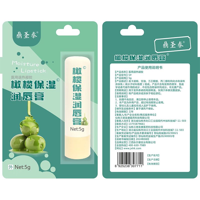 - 橄欖保濕潤唇膏醫(yī)用退熱凝膠 批準文號: 鄂仙桃械備20230021規(guī) 格: 5g/支