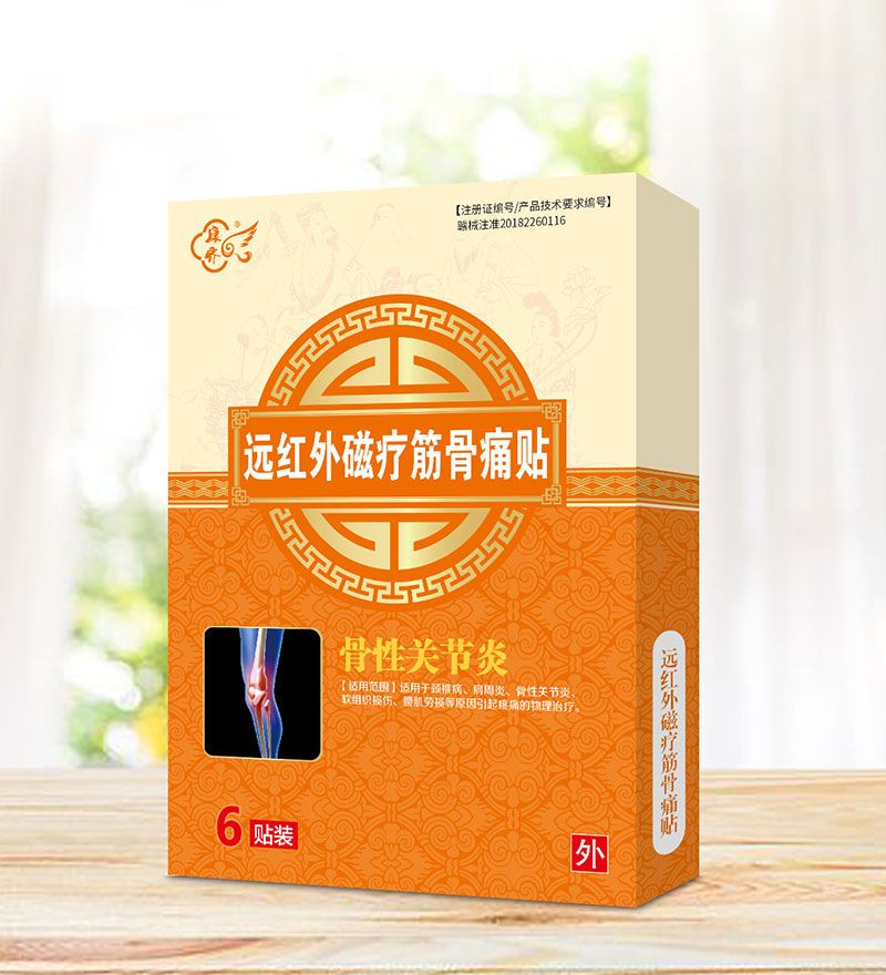 - 遠(yuǎn)紅外舒筋活血貼 批準(zhǔn)文號(hào): 贛械注準(zhǔn)20192090284規(guī) 格: 9cm* 12cm/貼*6貼/盒
