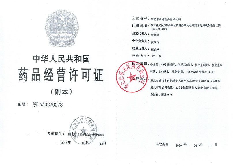 湖北思明達(dá)醫(yī)藥有限公司是一家以醫(yī)院臨床、全國(guó)連鎖藥店開(kāi)發(fā)及湖北O(jiān)TC控銷(xiāo)為主,醫(yī)藥器械、耗材及醫(yī)藥原料經(jīng)營(yíng)為一體的新型企業(yè)。寬敞、明亮、整潔的公司坐落于武漢市海峽兩岸創(chuàng)業(yè)園,交通十分便利。