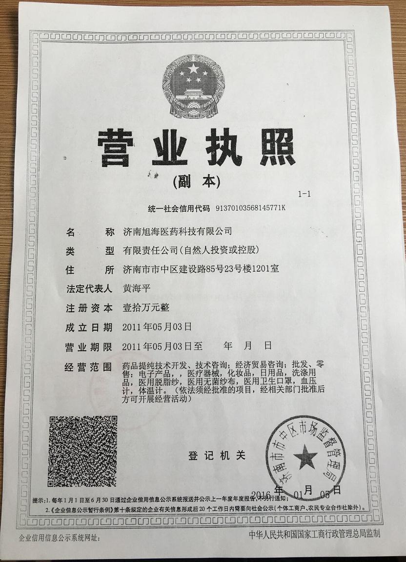 濟(jì)南旭海醫(yī)藥科技有限公司與2011年5月3日在濟(jì)南市市中區(qū)市場監(jiān)督管理局成立,地址位于濟(jì)南市市中區(qū)建設(shè)路,是一家專門從事新藥代理與推廣的現(xiàn)代化醫(yī)藥營銷企業(yè)。