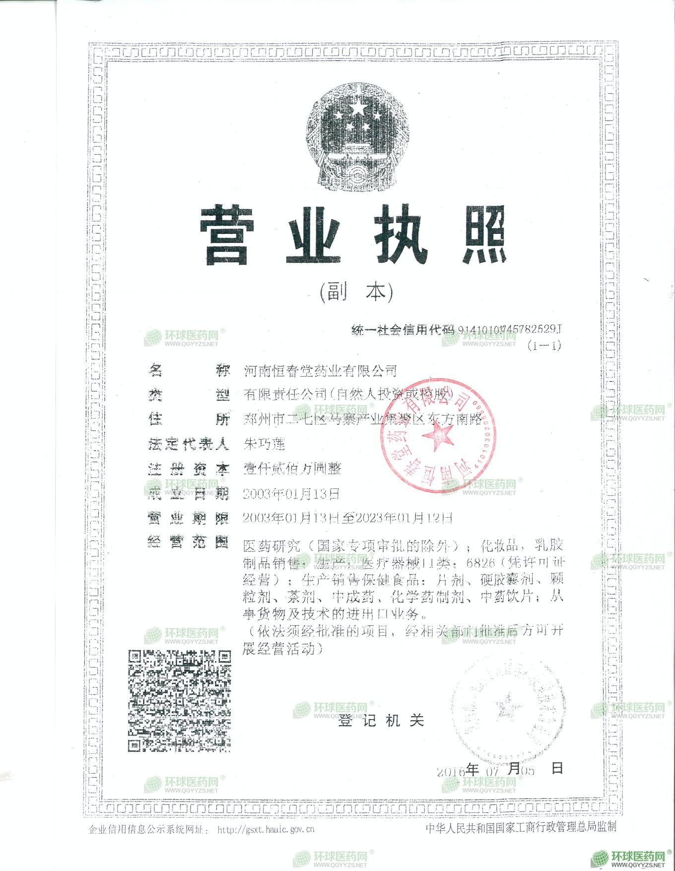 河南恒春堂藥業(yè)有限公司