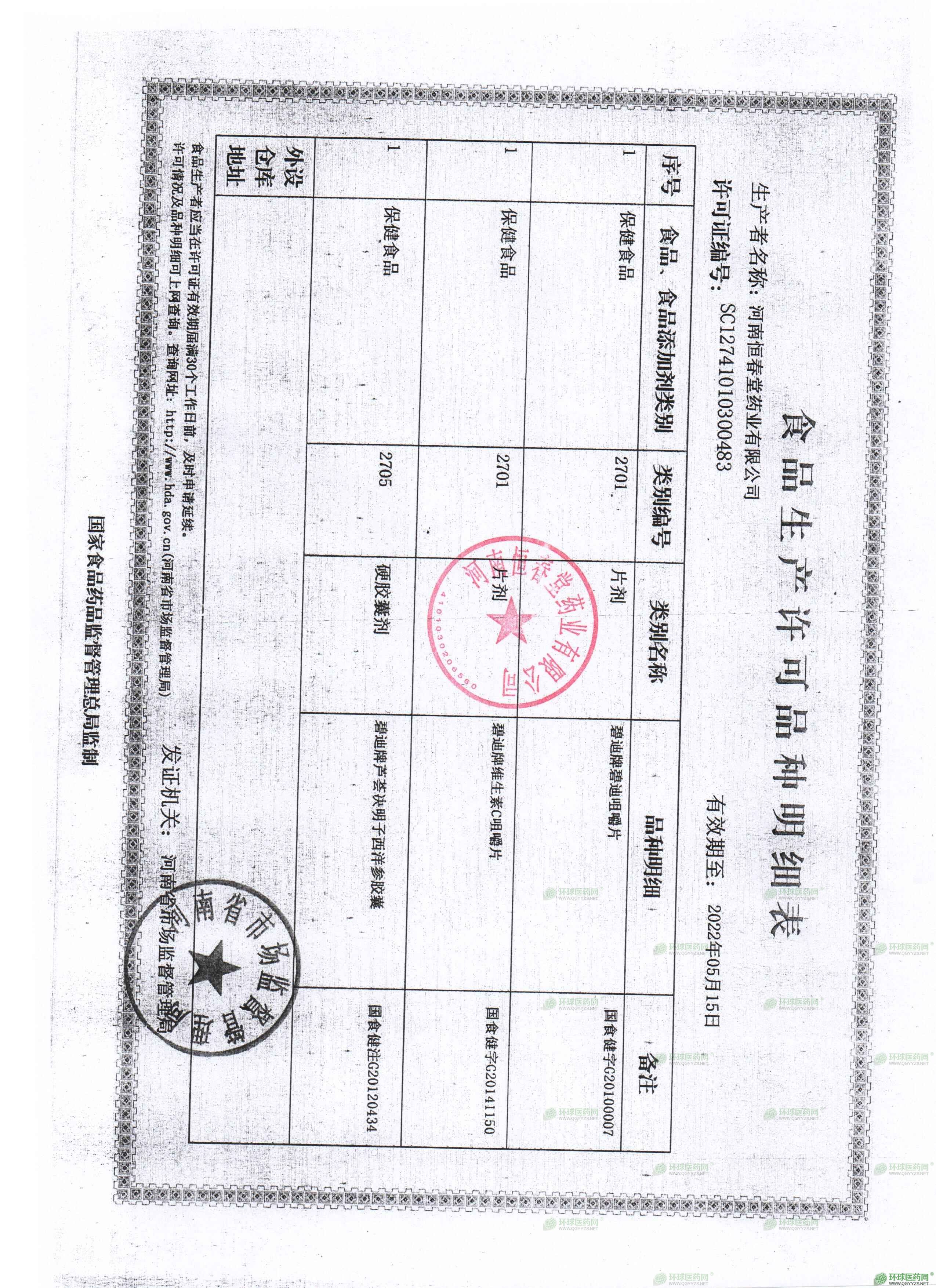 - 保健食品生產(chǎn)許可證