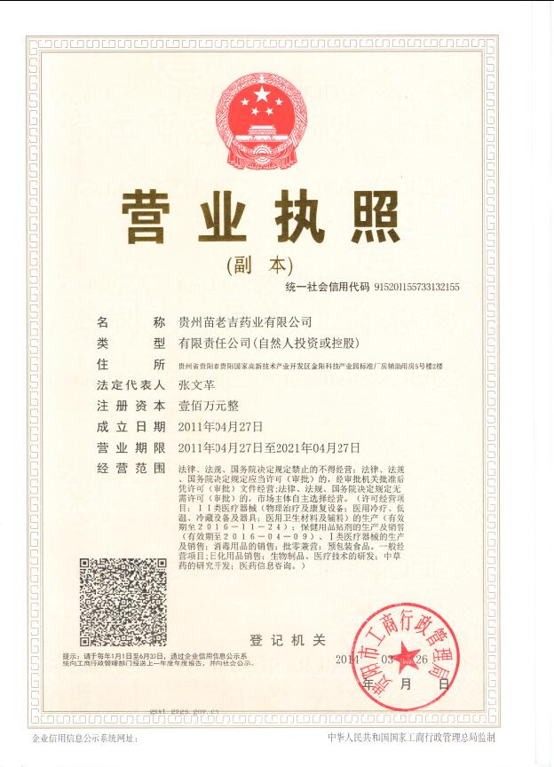 公司成立于2011年,是集醫(yī)療產(chǎn)品和保健用品研發(fā)、生產(chǎn)、銷售為一體的高新技術(shù)企業(yè)。貴州苗老吉藥業(yè)有限公司以貴州苗醫(yī)、苗藥傳承精華為基礎(chǔ),貴州豐富的中草藥資源為依托,貴州相關(guān)醫(yī)藥研發(fā)機(jī)構(gòu)為技術(shù)研究核心,先進(jìn)的生產(chǎn)設(shè)備和嚴(yán)格的質(zhì)量規(guī)范管理為要求,研究、開發(fā)和生產(chǎn)療效獨(dú)特、高效、質(zhì)高價(jià)廉的優(yōu)質(zhì)民族醫(yī)藥用品,F(xiàn)已開發(fā)出多種劑型,產(chǎn)品,收到廣大經(jīng)銷商、患者的信賴!