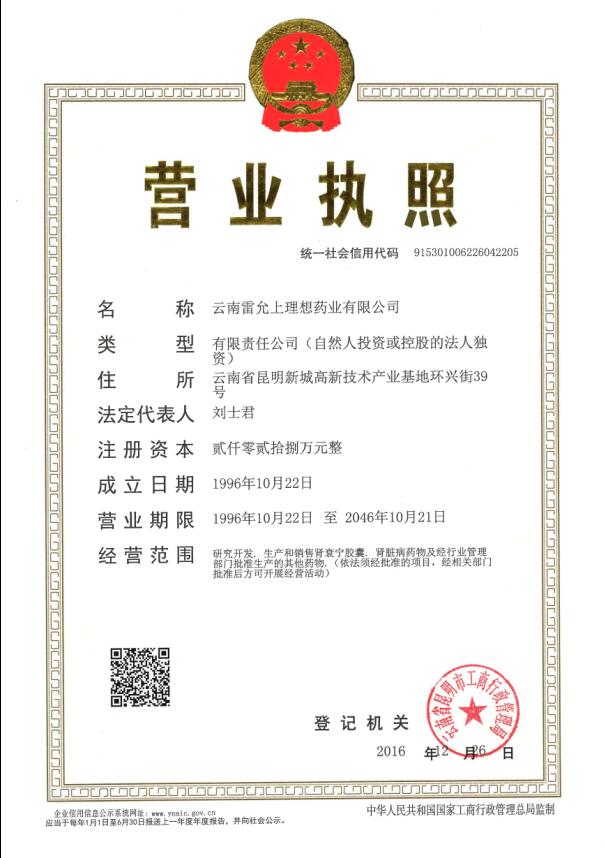 日常監(jiān)管機構(gòu): 云南省藥品監(jiān)督管理局