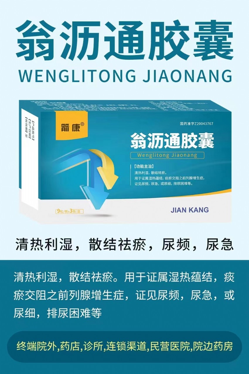 功能主治:清熱利濕,散結(jié)祛瘀。用于證屬濕熱蘊(yùn)結(jié),痰瘀交阻之前列腺增生癥,癥見(jiàn)尿頻,尿急,或尿細(xì),排尿困難等。