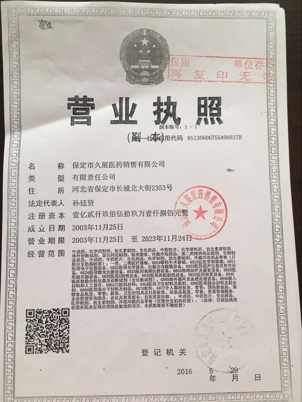 保定市久展醫(yī)藥銷售有限公司