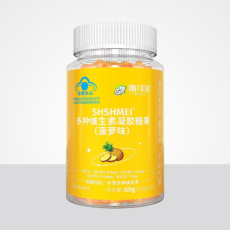 - 多種維生素凝膠糖果(菠蘿味) 批準文號: 食健備G202336001679規(guī) 格: 60g/瓶