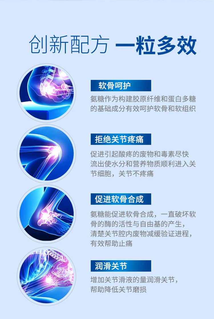 每片含194mg的氨糖,修復(fù)關(guān)節(jié)的特異性物質(zhì),有效保護(hù)關(guān)節(jié)、消除關(guān)節(jié)炎