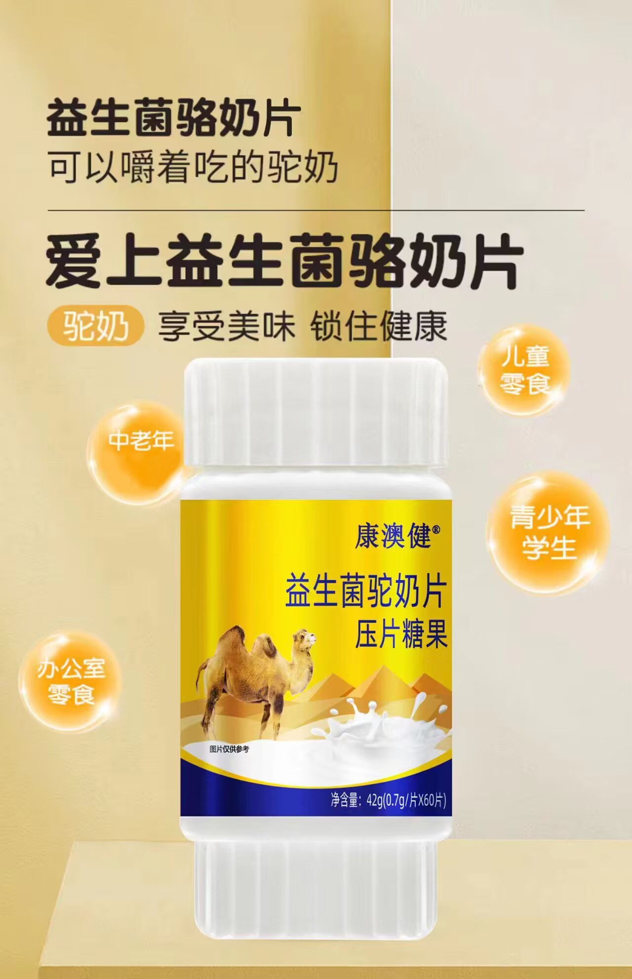 產(chǎn)品名稱:益生菌高鈣駝奶蛋白固體飲料