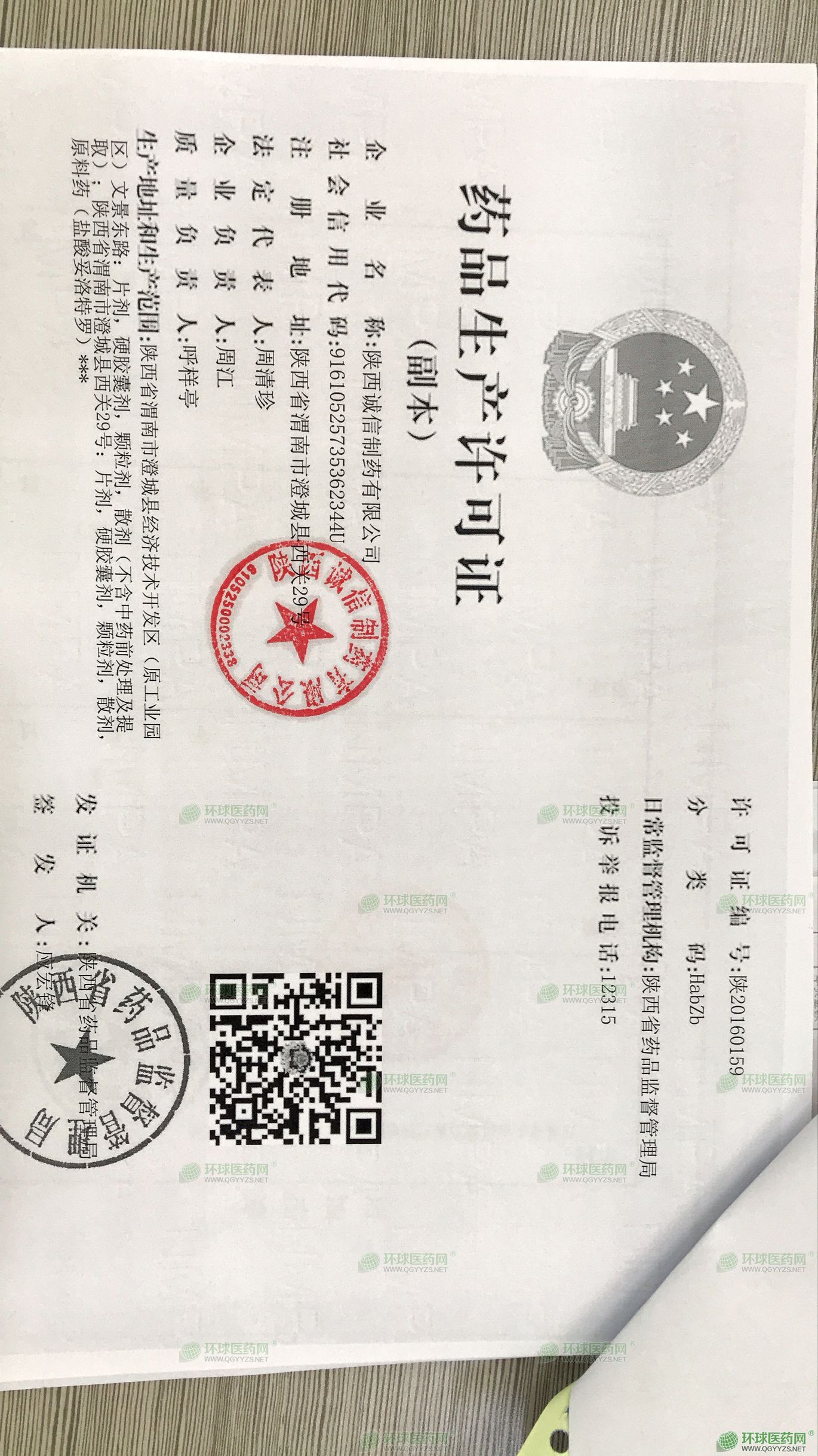 發(fā)證機關: 陜西省藥品監(jiān)督管理局