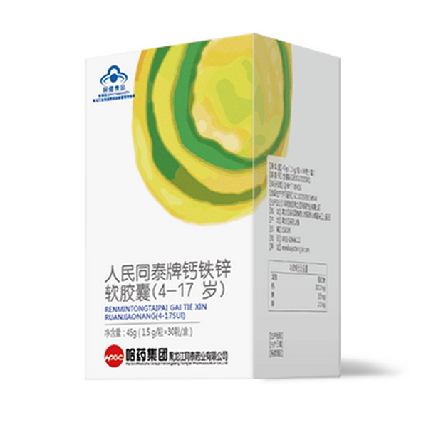 - 人民同泰牌鈣鐵鋅軟膠囊4-17歲 批準(zhǔn)文號: 食健備G2017230071規(guī) 格: 45g(1.5 g/粒×30粒/盒)