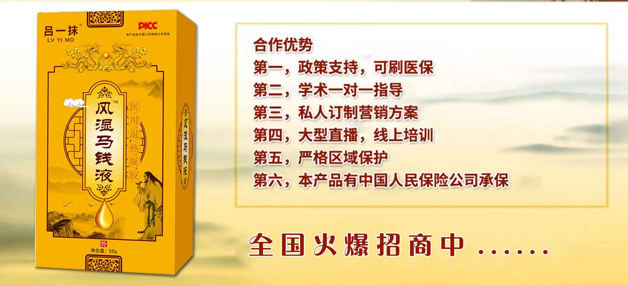 河南呂真人醫(yī)藥科技有限公司有政策支持,呂一抹風(fēng)濕馬錢液可刷醫(yī)保?蛇M(jìn)行學(xué)術(shù)一對(duì)一指導(dǎo),可私人定制營(yíng)銷方案。有大型直播,進(jìn)行線上培訓(xùn),幫助代理商推廣。