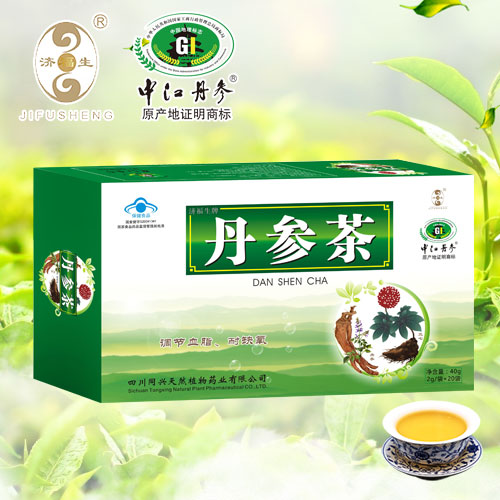 丹參茶精選名山皇家茶園茶葉,配以中江丹參、文山三七、新疆甘草等地道中藥材的有效成分提取物,經(jīng)高科技提取、配制工藝研制而成的新一代保健茶品。