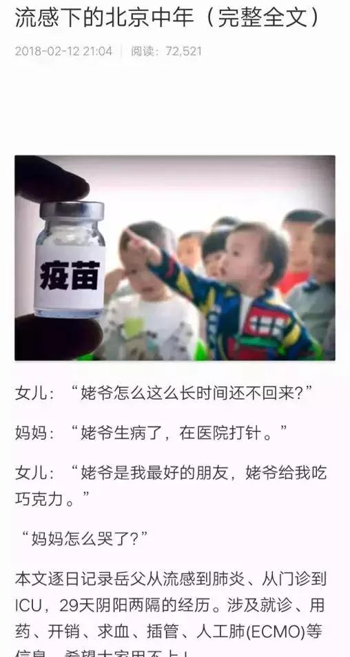 這讓我想起了去年肆虐的那場流感,特別是一年前刷爆朋友圈的那篇《流感下的北京中年》,讓很多人對流感感到后怕。