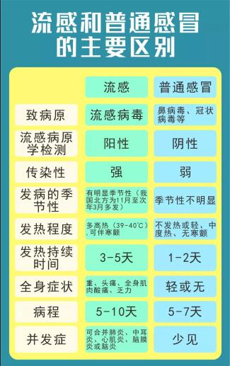 下面這張圖來自中國疾控中心,清楚地說明了流感和普通感冒的區(qū)別。簡單來說,如果發(fā)熱比較高,伴有頭痛、肌肉酸痛、乏力這些全身癥狀,就要小心是不是流感了。