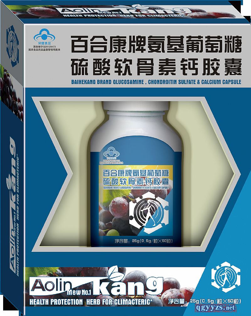- 百合康牌氨基葡萄糖硫酸軟骨素鈣膠囊 批準(zhǔn)文號: 國食健字G20120473規(guī) 格: 0.5g/粒*50粒