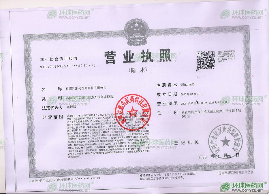 杭州達(dá)維先醫(yī)藥科技有限公司