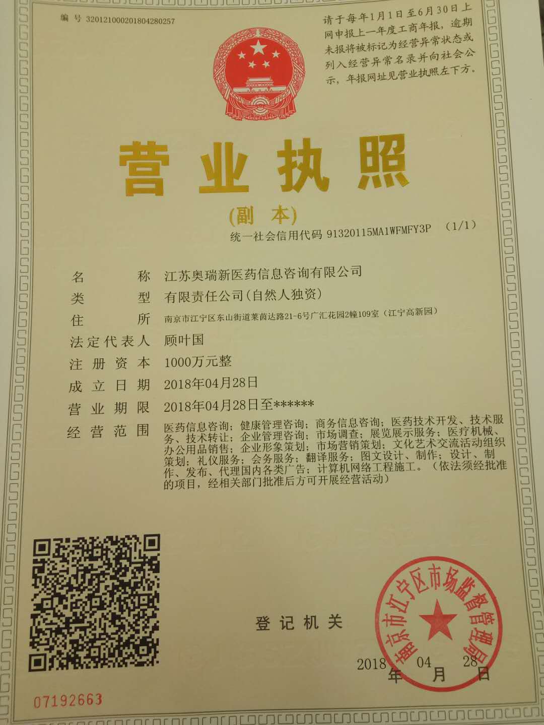 江蘇奧瑞新醫(yī)藥信息咨詢有限公司
