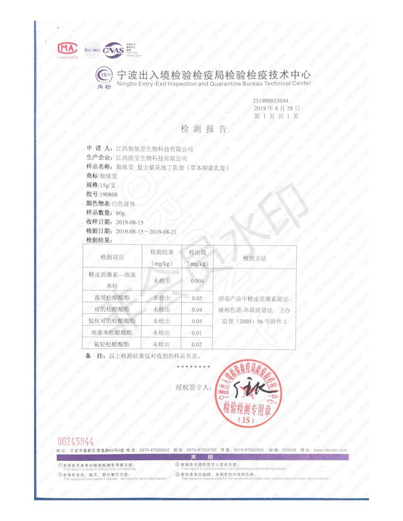 對此,復(fù)方紫花地丁乳膏進(jìn)行了原料檢測。經(jīng)國家檢測機(jī)構(gòu)(寧波出入境檢驗檢疫局檢驗檢疫技術(shù)中心)檢驗不含激素和抗生素。