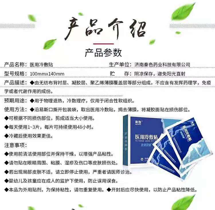 醫(yī)用冷敷貼OEM|醫(yī)用冷敷貼代加工貼牌廠家主要是由薄荷、水與壓敏膠制作而成的高分子凝膠,涂敷在無(wú)紡布上,外有防粘層制成的外用貼劑。秦魯藥業(yè)科技有限公司的醫(yī)用冷敷貼OEM加工貼牌廠家適用于人體的局部物理降溫,起到冷敷治療緩解局部疼痛,提神醒腦的作用。