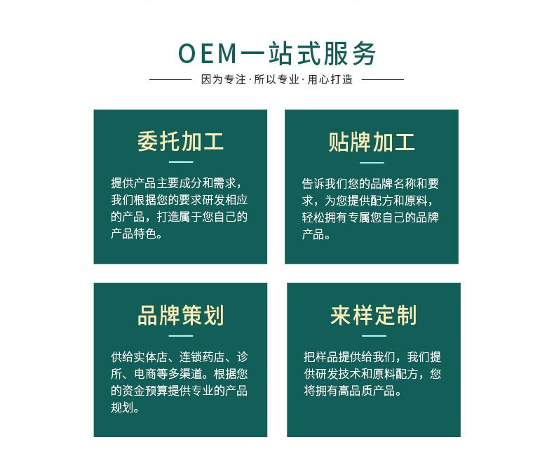 定制服務(wù):我們提供個(gè)性化定制服務(wù),根據(jù)客戶的需求和要求,量身打造符合市場(chǎng)需求的膏藥產(chǎn)品。