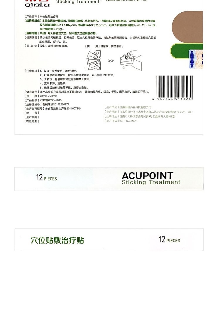 【主要結(jié)構(gòu)】本品由遠(yuǎn)紅外陶瓷粉,丙烯酸壓敏膠,水刺無紡布,不銹鋼珠及離型紙制成。穴位貼敷治療貼的壓敏膠布剝離度不小于1.0N/cm,持粘性應(yīng)不大于2.5mm。遠(yuǎn)紅外發(fā)射波長范圍8μm-15μm,法向比輻射率≥75%。