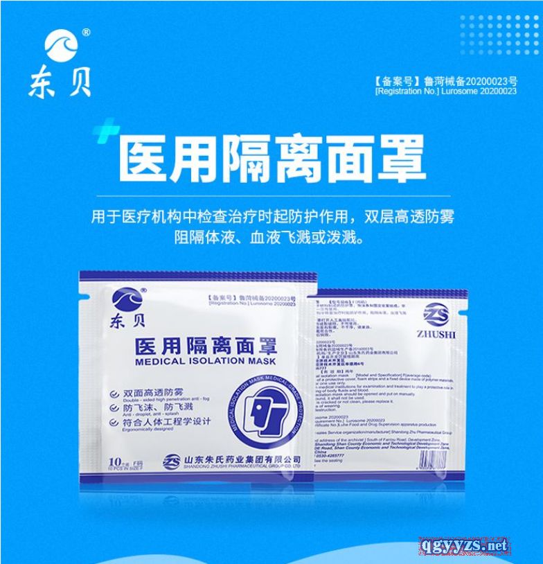 - 朱氏藥業(yè)醫(yī)用隔離面罩 批準(zhǔn)文號: 魯菏械備20200023號規(guī) 格: F(均碼)
