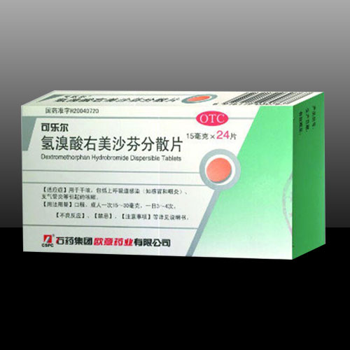 氫溴酸****分散片是一款中樞性鎮(zhèn)咳藥,每片含氫溴酸****15毫克。輔料為:乳糖、阿斯巴甜、枸櫞酸、交聯(lián)聚乙烯吡咯烷酮、聚乙烯吡咯烷酮K30、硬脂酸鎂、95%乙醇?梢种蒲幽X咳嗽中樞而產(chǎn)生鎮(zhèn)咳作用。