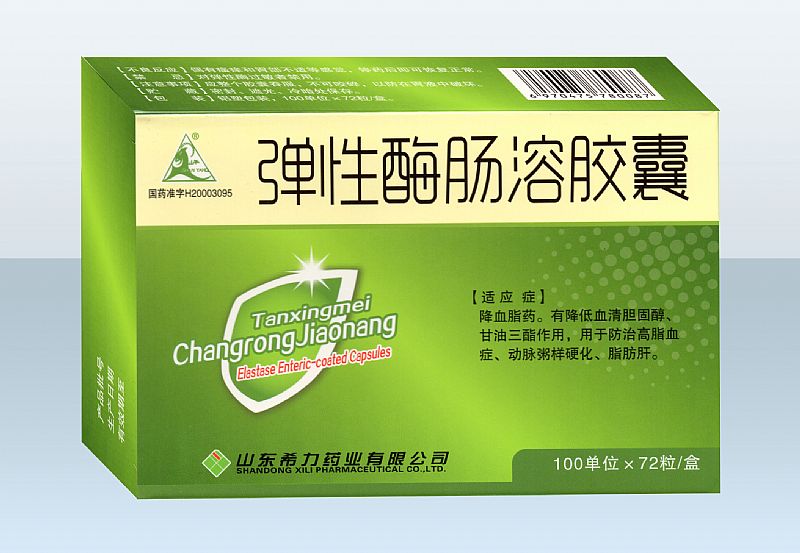 - 彈性酶腸溶膠囊 批準(zhǔn)文號(hào): 國藥準(zhǔn)字H20003095規(guī) 格: 72粒/盒×240盒