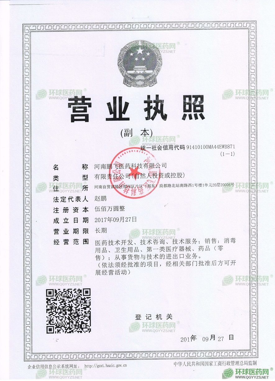 [企業(yè)法人]:河南鵬飛醫(yī)藥科技有限公司