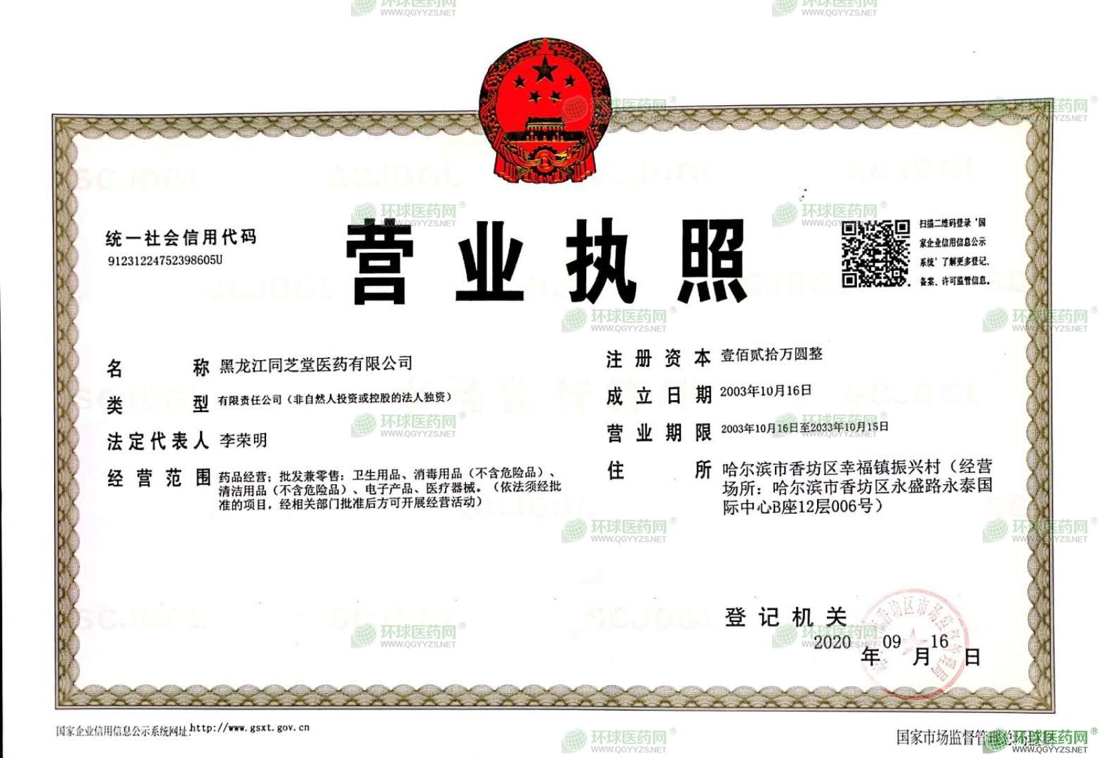 黑龍江同芝堂醫(yī)藥有限公司,注冊地址哈爾濱市香坊區(qū)幸福鎮(zhèn)振興村,法定代表人李榮明。經(jīng)營范圍包括批發(fā):化學(xué)藥制劑,中成藥、抗生素、生化藥品、化學(xué)原料藥(不含冷藏、冷凍藥品)