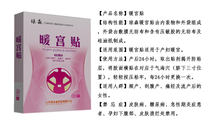 暖宮貼是臨床婦科常用的貼劑,充分根據(jù)物理治療學(xué)為基礎(chǔ),運(yùn)用中醫(yī)內(nèi)病外治理論和經(jīng)絡(luò)傳導(dǎo)治療原理,將穴位炙熱療法和遠(yuǎn)紅外物理療法相結(jié)合,通過(guò)對(duì)氣海穴的遠(yuǎn)紅外溫?zé)犰僦,通?jīng)絡(luò)、正血脈、激活子宮的活動(dòng)機(jī)能,促進(jìn)血管、子宮正常收縮、加快子宮內(nèi)組織的修復(fù)生長(zhǎng),增強(qiáng)免疫力,防止產(chǎn)后腹痛,同時(shí)提高產(chǎn)婦自身的生理機(jī)能。產(chǎn)生對(duì)受損器官的修補(bǔ)和再生能力,具有溫經(jīng)散寒、暖宮止痛、調(diào)和氣血之作用,有效防止“月子病”是專為產(chǎn)婦、流產(chǎn)女性及月經(jīng)不調(diào)、痛經(jīng)女性研制的產(chǎn)后月子護(hù)理用品。