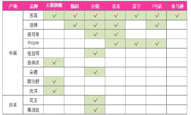 蘇菲是安睡褲行業(yè)龍頭,產(chǎn)品豐富,渠道廣。其他各大品牌均有安睡褲系列,迅速搶占安睡褲市場。