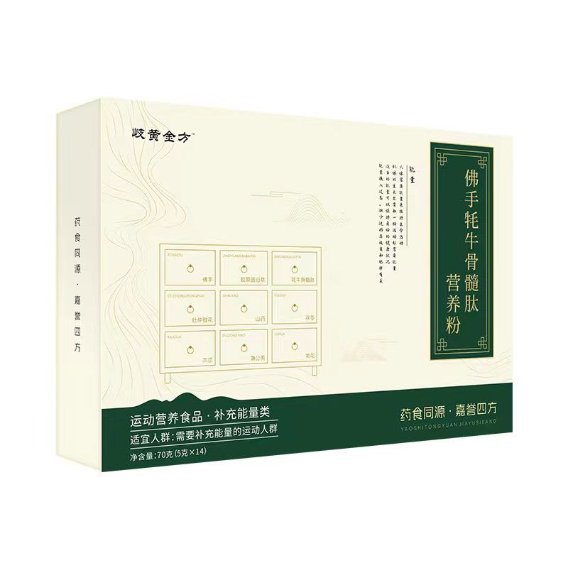 - 佛手耗牛骨髓肽營養(yǎng)粉特殊膳食用食品 批準(zhǔn)文號(hào): SC10661990408256規(guī) 格: 5g*14袋*60盒/箱