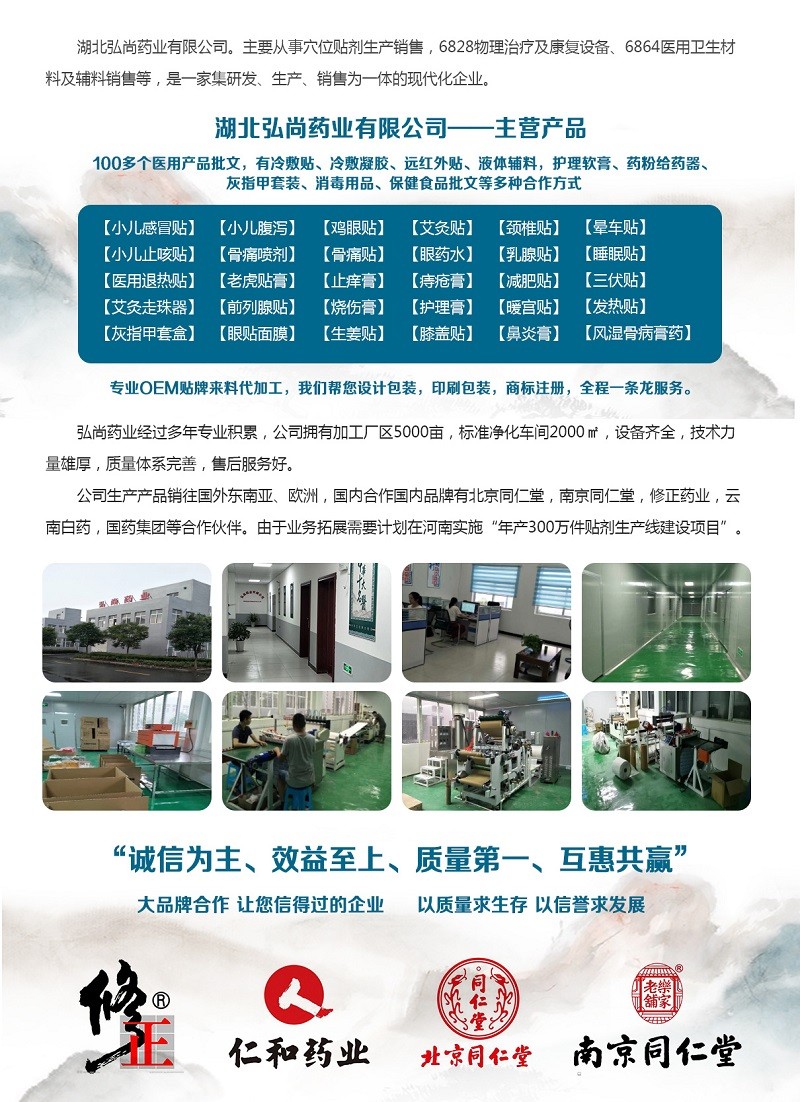 湖北弘尚藥業(yè)依托政策優(yōu)勢與成熟的一站式代工體系,誠邀渠道商、品牌方及健康機構共建貼敷產品生態(tài)。選擇我們,您將獲得: