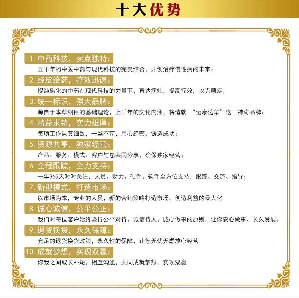 該產(chǎn)品來源于深圳運康達華科技有限公司。該公司從事中醫(yī)藥、醫(yī)療器械、保健用品的開發(fā)研制、生產(chǎn)制造、銷售服務(wù)為核心,并以中醫(yī)養(yǎng)生培訓(xùn)、健康教育指導(dǎo)為依托、秉承弘揚民族中醫(yī)藥、造福人類健康的精神理念,以祖國的醫(yī)學(xué)名著《黃帝內(nèi)經(jīng)》為理論基礎(chǔ),結(jié)合現(xiàn)代醫(yī)療、保健養(yǎng)生等,創(chuàng)立了中藥提速療法,開辟了一條新的治療途徑,為祖國中醫(yī)中藥插上了一雙騰飛的翅膀。