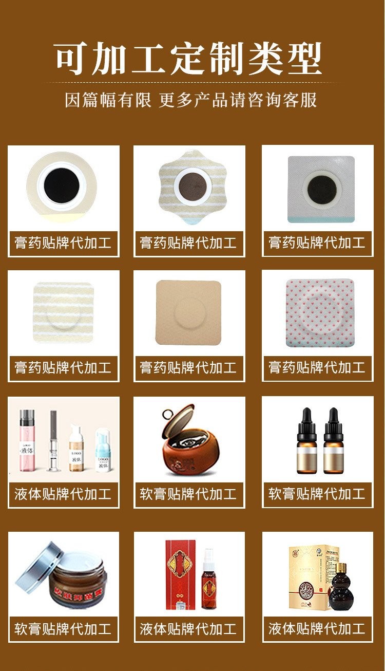 第三種,商家只需提供自家品牌商標,其他由膏藥貼牌加工廠家來提供完成。