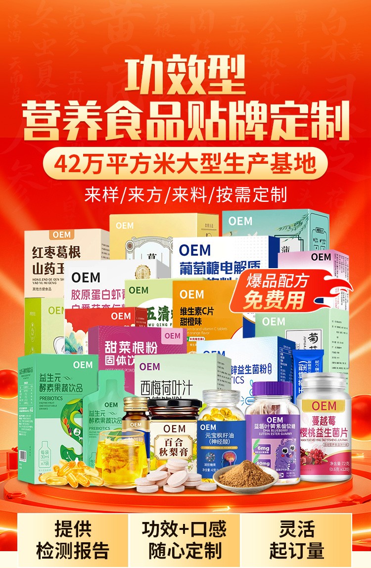 OEM貼牌:提供來料加工、來樣加工、來配方加工服務(wù),支持品牌方快速切入市場。
