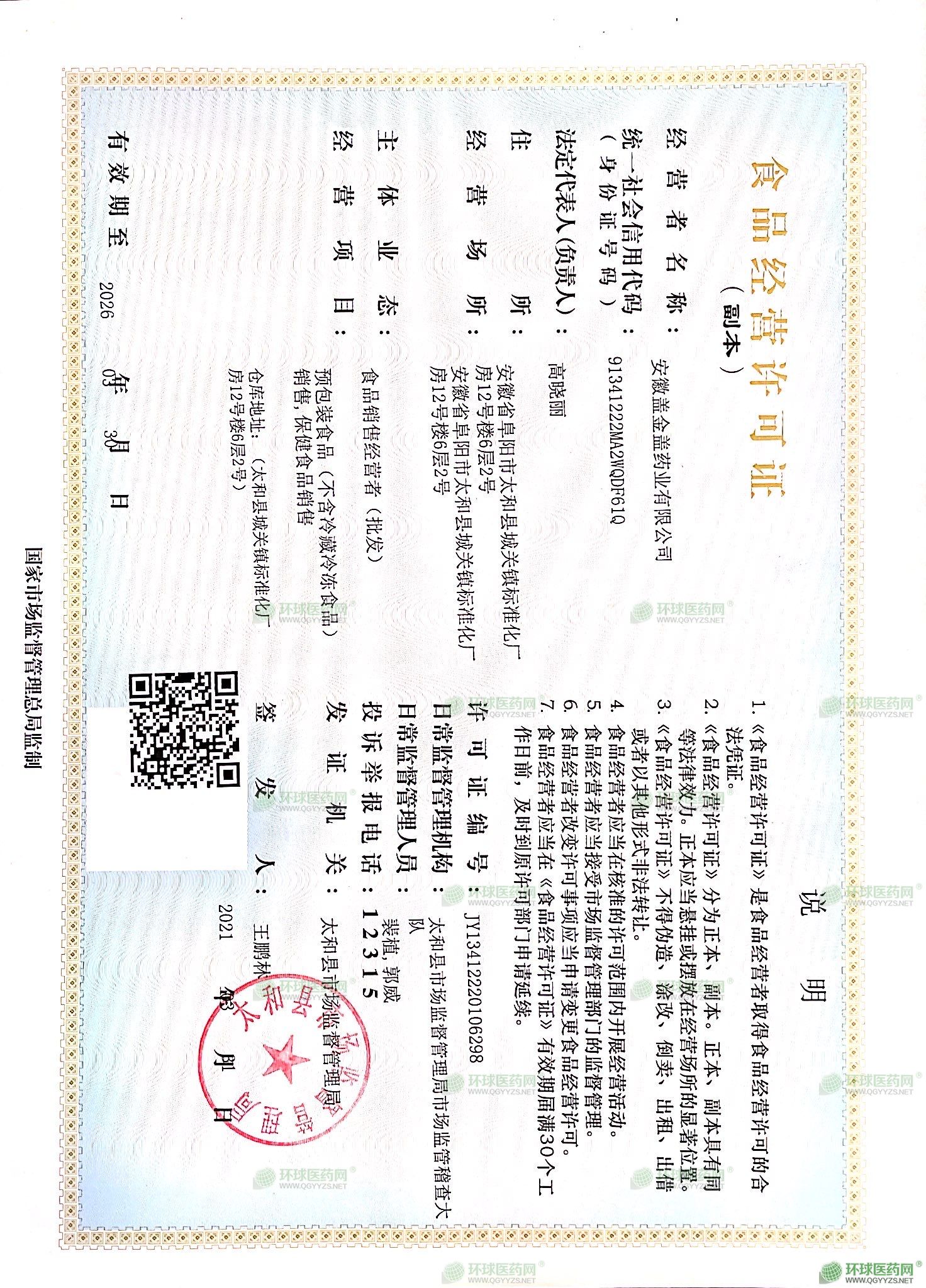 安徽蓋金蓋藥業(yè)有限公司成立于2021年02月26日,注冊(cè)地位于安徽省阜陽(yáng)市太和縣城關(guān)鎮(zhèn)標(biāo)準(zhǔn)化廠房12號(hào)樓6層2號(hào),法定代表人為高曉麗。經(jīng)營(yíng)范圍包括藥品生產(chǎn)與銷售;中藥飲片加工和銷售;地產(chǎn)中藥材、農(nóng)副產(chǎn)品種植購(gòu)銷;保健食品、預(yù)包裝食品、食品添加劑生產(chǎn)銷售;壓片糖果、固體飲料、堅(jiān)果、一類及二類醫(yī)療器械生產(chǎn)銷售;醫(yī)用消毒液、婦科洗劑、家居消毒用品(以上不含危化品)、植物提取物、日用品、體育用品、塑料制品生產(chǎn)銷售(依法須經(jīng)批準(zhǔn)的項(xiàng)目,經(jīng)相關(guān)部門批準(zhǔn)后方可開(kāi)展經(jīng)營(yíng)活動(dòng))