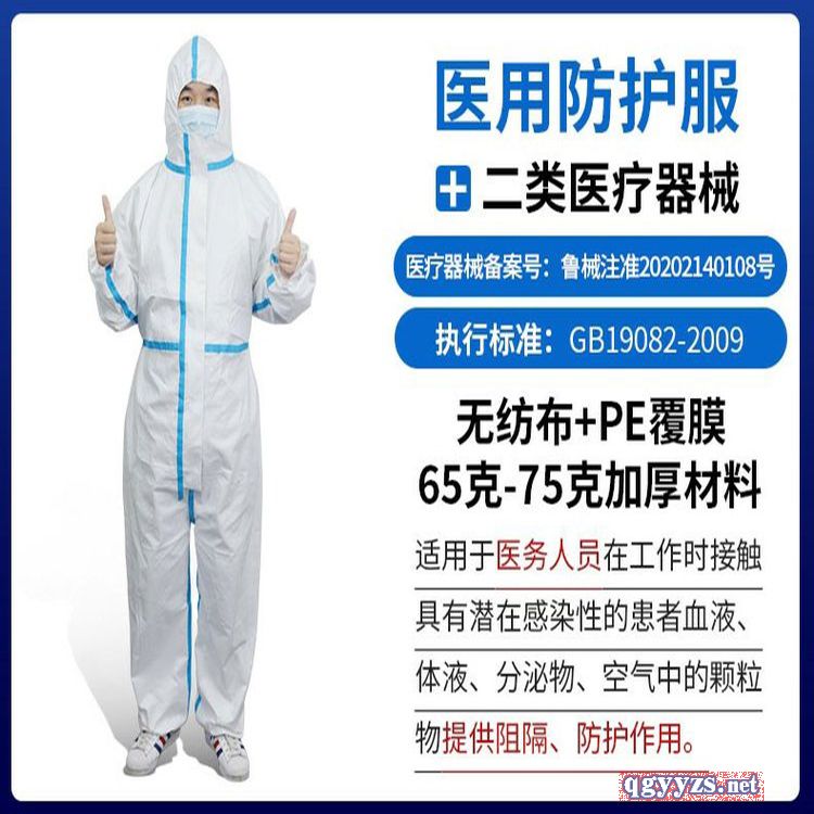 - 防護(hù)服生廠廠家醫(yī)用防護(hù)服65g高亢無(wú)紡布 批準(zhǔn)文號(hào): 魯械注準(zhǔn)20212140985規(guī) 格: 無(wú)菌連體式連腳、無(wú)菌連體式不連腳