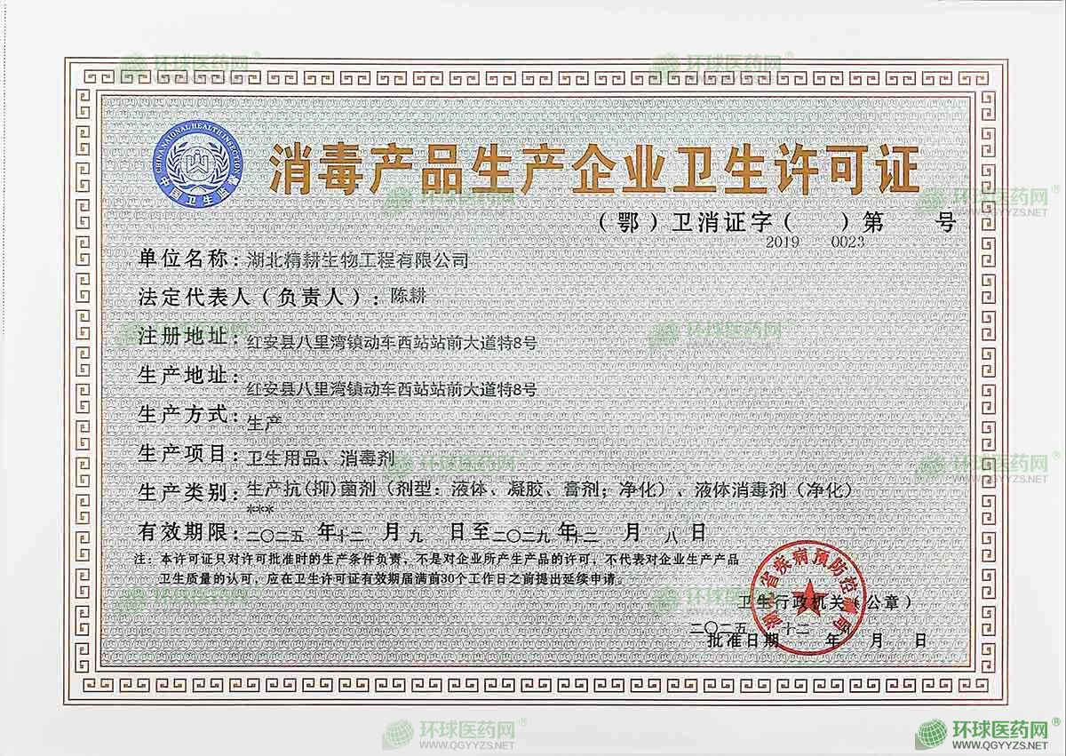- 消毒產(chǎn)品生產(chǎn)企業(yè)衛(wèi)生許可證
