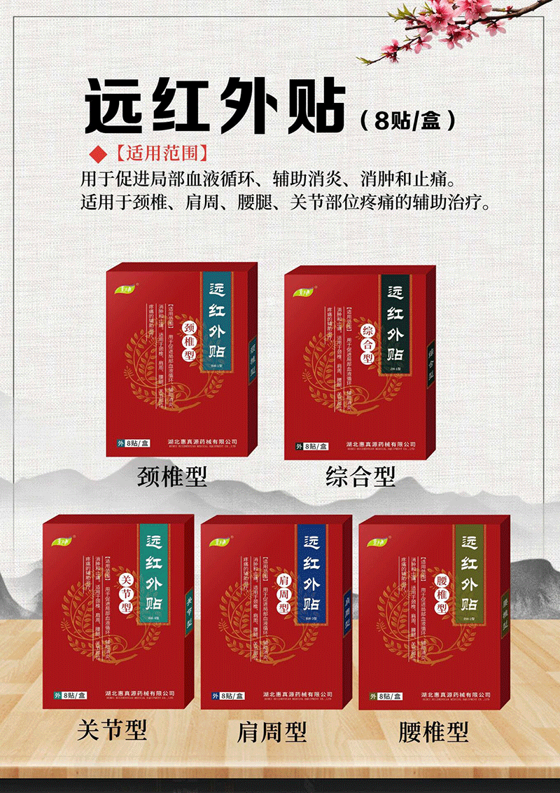 遠紅外貼有5種類型,分別為頸椎型、綜合型、關(guān)節(jié)型、肩周型和腰椎型,5種類型側(cè)重點不同,代理商和消費者可按需選擇。