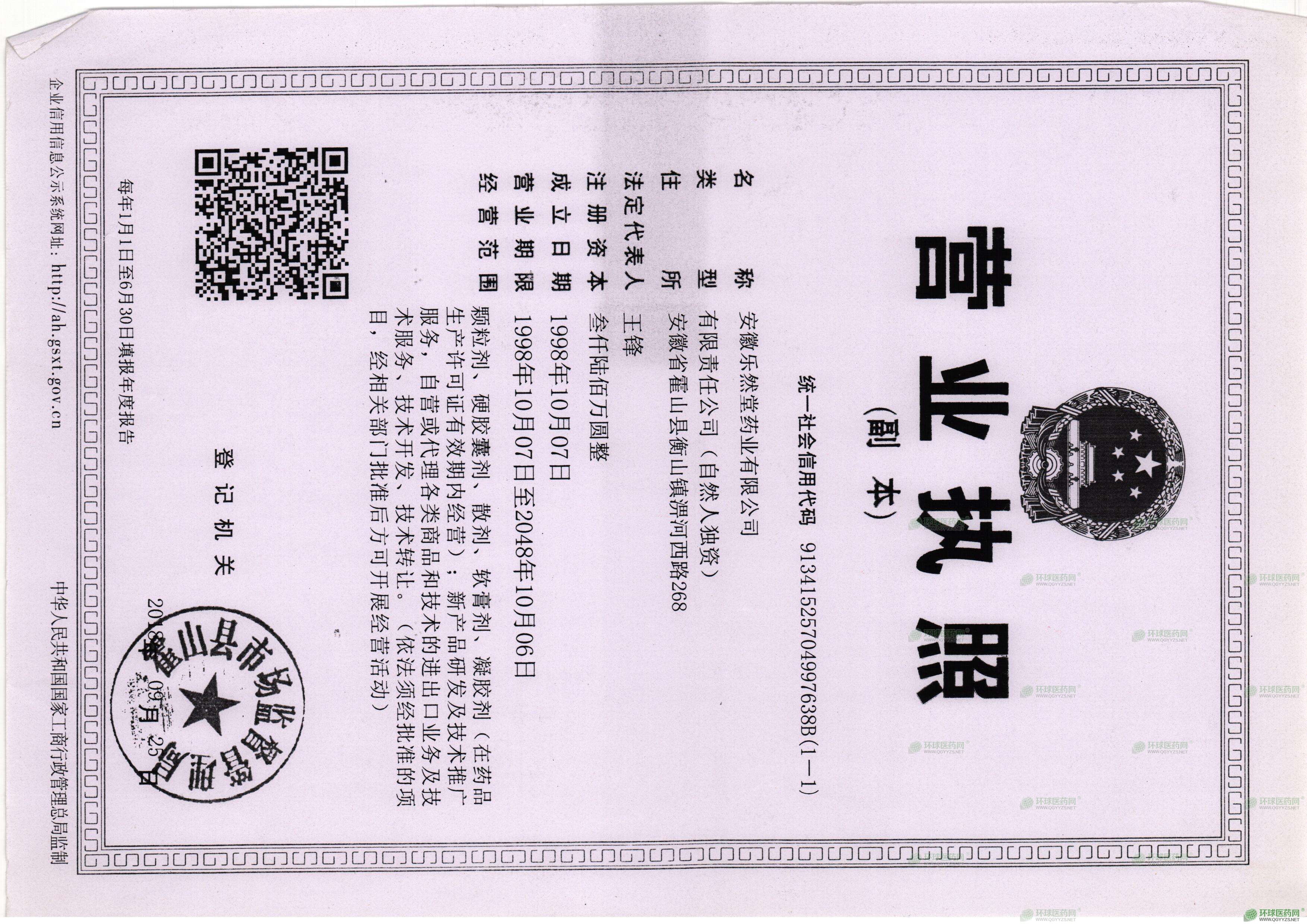 發(fā)證機(jī)關(guān): 安徽省藥品監(jiān)督管理局