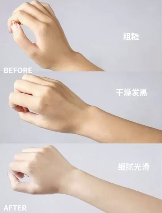 直觀的前后對比就是我的手臂顏色從之前粗糙干巴巴細(xì)紋橫生的質(zhì)感,到現(xiàn)在已經(jīng)變得細(xì)嫩很多。