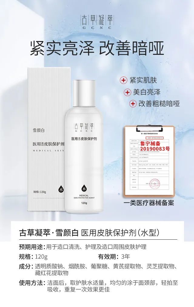 古草凝萃【雪顏白】美白補水系列具有獨特復(fù)配配方,堪稱美白補水神器,它主要含有黃芪、靈芝、藏紅花、煙酸、透明質(zhì)酸等明星成分,具祛斑美白保濕等功效,還原嫩白肌膚,一套解決肌膚多種問題。它屬于醫(yī)用級別產(chǎn)品,使用更放心,適合**膚質(zhì)。