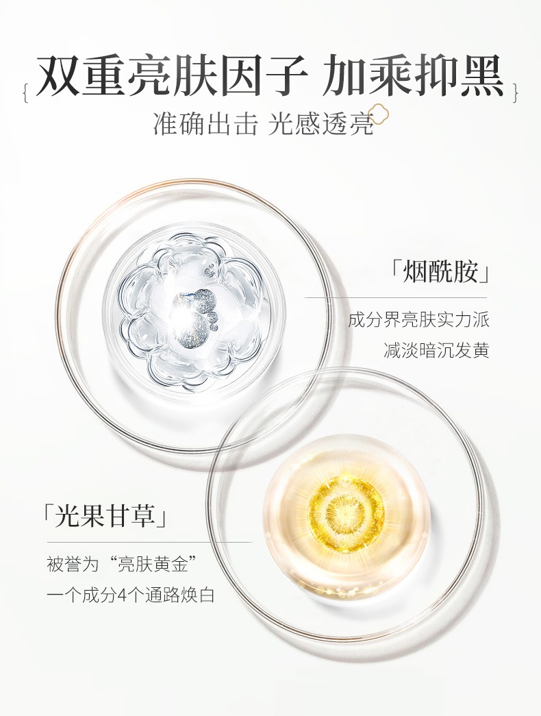2、煙酰胺X光果甘草:可針對粗糙暗沉無光肌膚,加倍提升亮膚效果。
