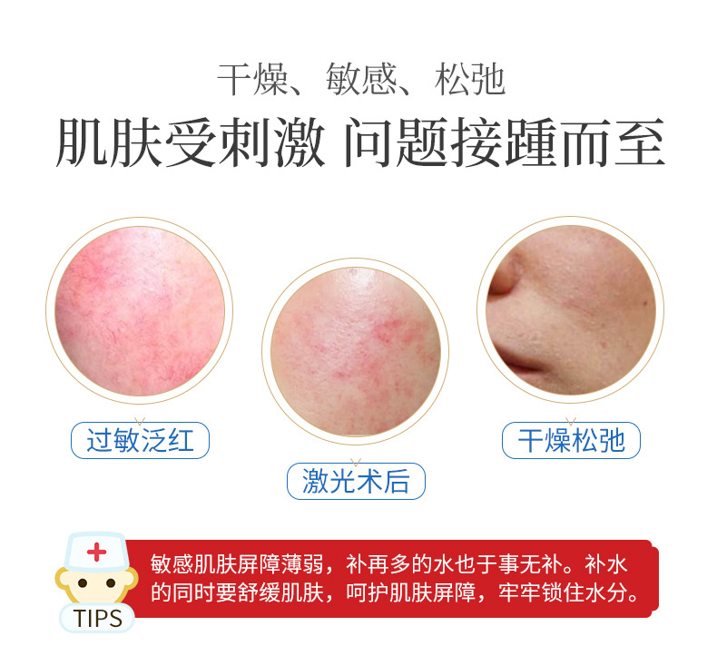 這個(gè)階段你常常被人誤以為你皮膚好好,看起來白里透紅的,其實(shí)可能你的角質(zhì)層已經(jīng)夠薄了,這個(gè)時(shí)候停止過度護(hù)膚,少用面膜,少用刺激性產(chǎn)品,包括早C晚A,還有**酸類護(hù)膚,你可以使用角鯊?fù)、神?jīng)酰胺、藍(lán)銅勝肽,都可以幫助你去增厚你的臉皮。