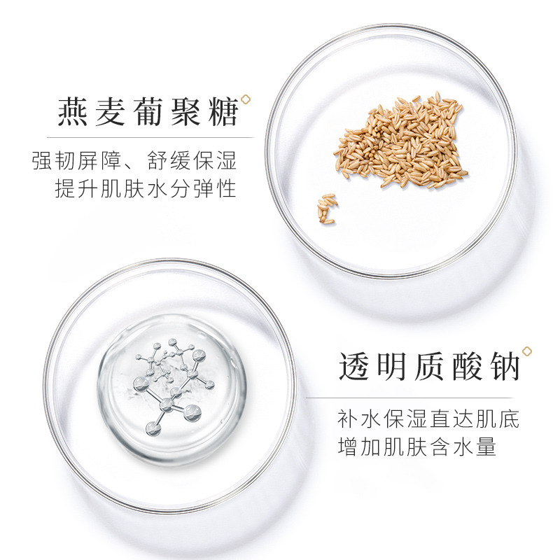 3、透明質(zhì)酸鈉X燕麥葡聚糖:強韌皮膚屏障,深層補水保濕,提高皮膚彈性。