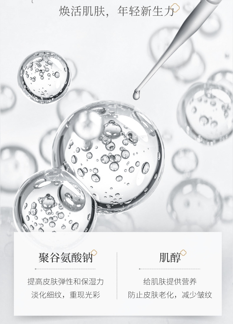 1、聚谷氨酸鈉X肌醇:給肌膚提供足夠的營養(yǎng),可防止細(xì)胞老化、淡化肌膚細(xì)紋和皺紋;雙重抵御初老。從而由內(nèi)而外改善肌膚干紋皺紋。
