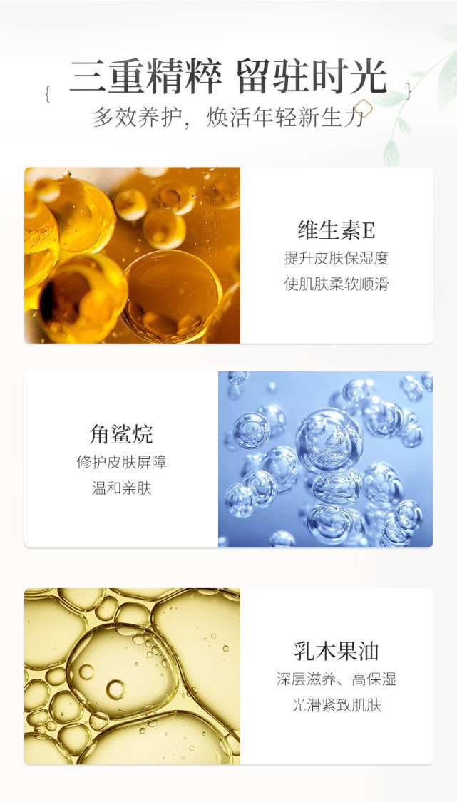 2、精粹成分:這款面霜中精心復(fù)配了包括有維生素E、角鯊?fù)椤⑷槟竟偷热鼐獬煞,它們是減輕動(dòng)態(tài)紋的有效成分,能提升皮膚膠原彈力活性,從內(nèi)到外緊致我們皮膚肌層結(jié)構(gòu),增強(qiáng)皮膚緊實(shí)彈潤(rùn)力,煥活年輕肌膚新生力!